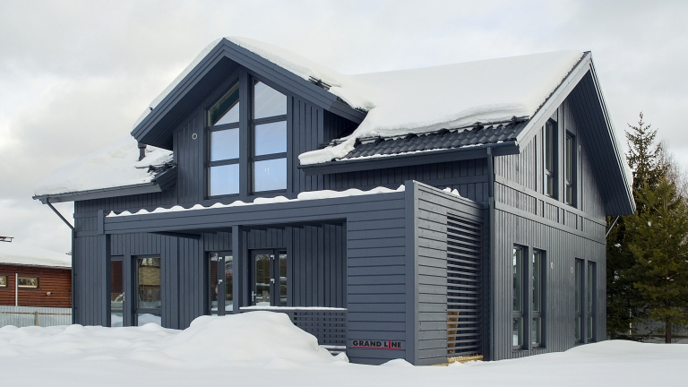 Простая геометрия профиля придает дому Скандинавский стиль. Современный дизайн достигается за счет прямых линий.